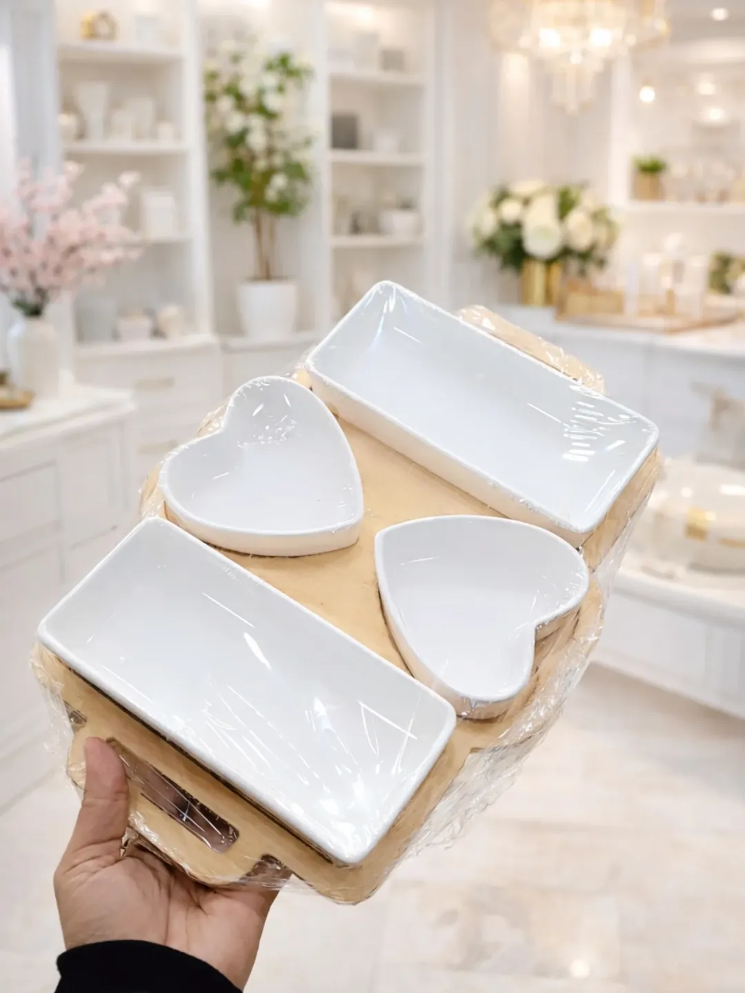 اردو خوری سرامیک زیره چوبی با سینی دستهدار