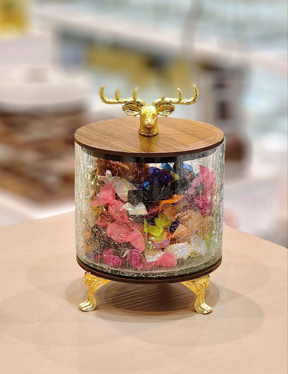 قندان بلور درب چوبی