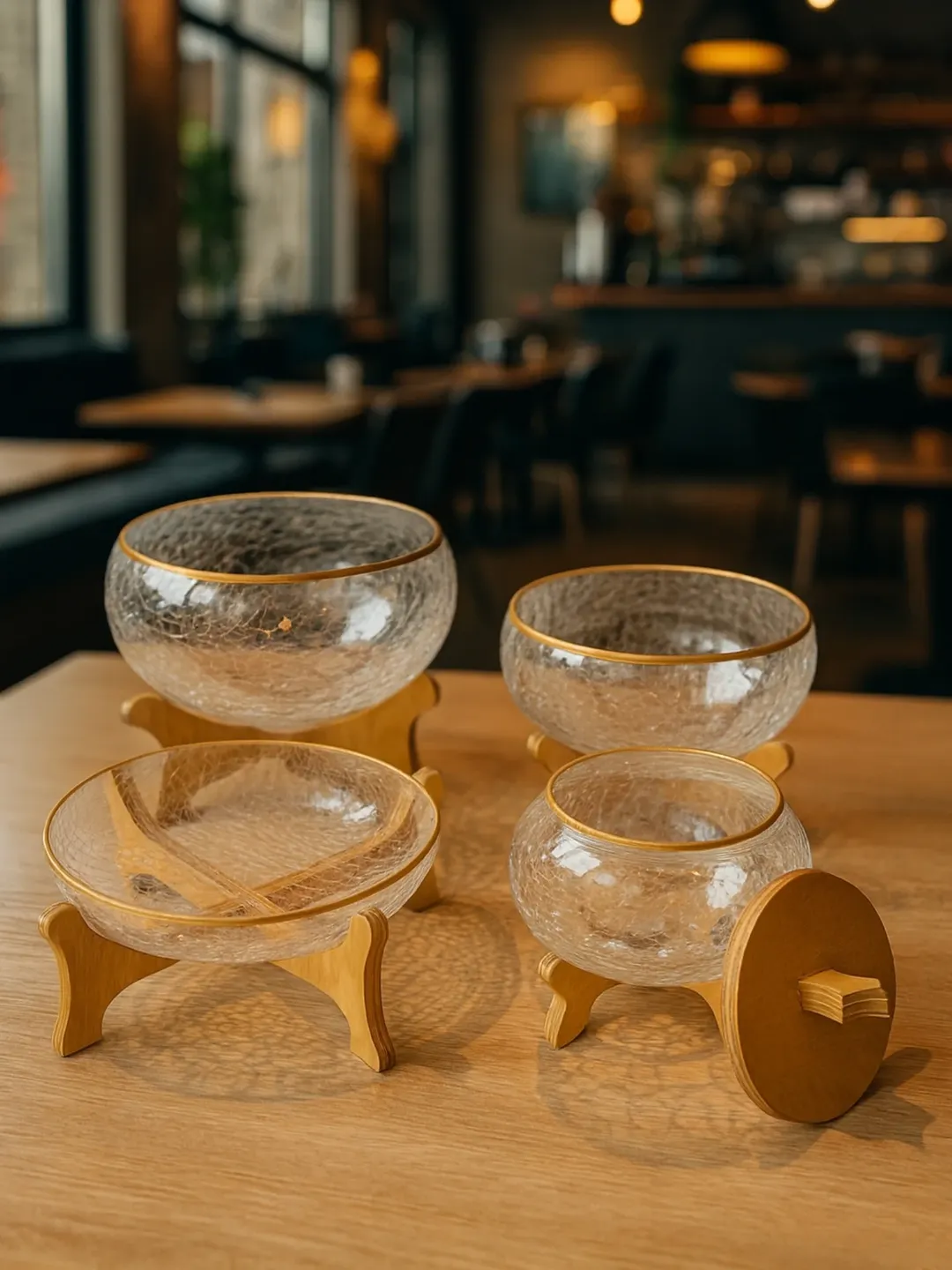 ترکیبی از ظرافت و زیبایی برای میز پذیرایی شما طراحی کلاسیک همراه با حاشیه طلایی براق، انتخابی لوکس برای مهمانیها و استفاده روزمره. کیفیت بالا، درخشش ماندگار و جلوهای چشمنواز. از جنس بلور طرح شکسته دارای پایه چوبی.